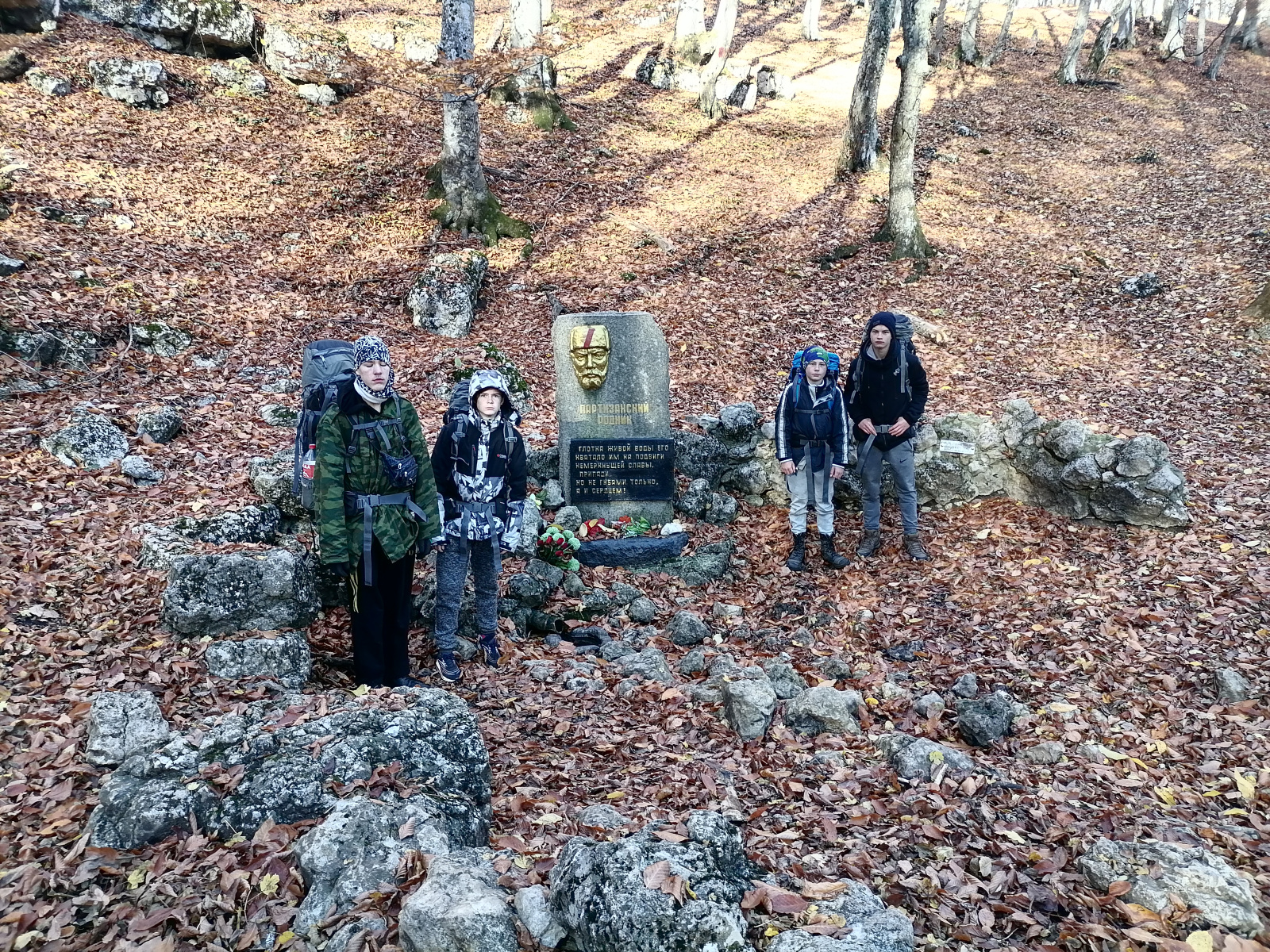 На осенних каникулах активисты Молодежного клуба Крымского отделения РГО - обучающиеся туристского объединения «Пешеходный туризм» совершили поход 2й степени сложности по Горному Крыму. Поход проходил по партизанским местам боевой славы. За четыре дня участники похода прошли 62 километра и посетили 29 памятников партизанам ВОВ, где почтили память погибших в годы войны. Мероприятие прошло в рамках Заповедной школы РГО.