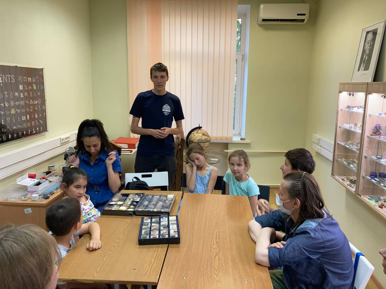 Рустам открыл ребятам «Мир минералов», рассказал какие особенности горных пород и минералов существуют, на что следует обращать внимание при их изучении и где можно "лично встретиться" с ними в столице.