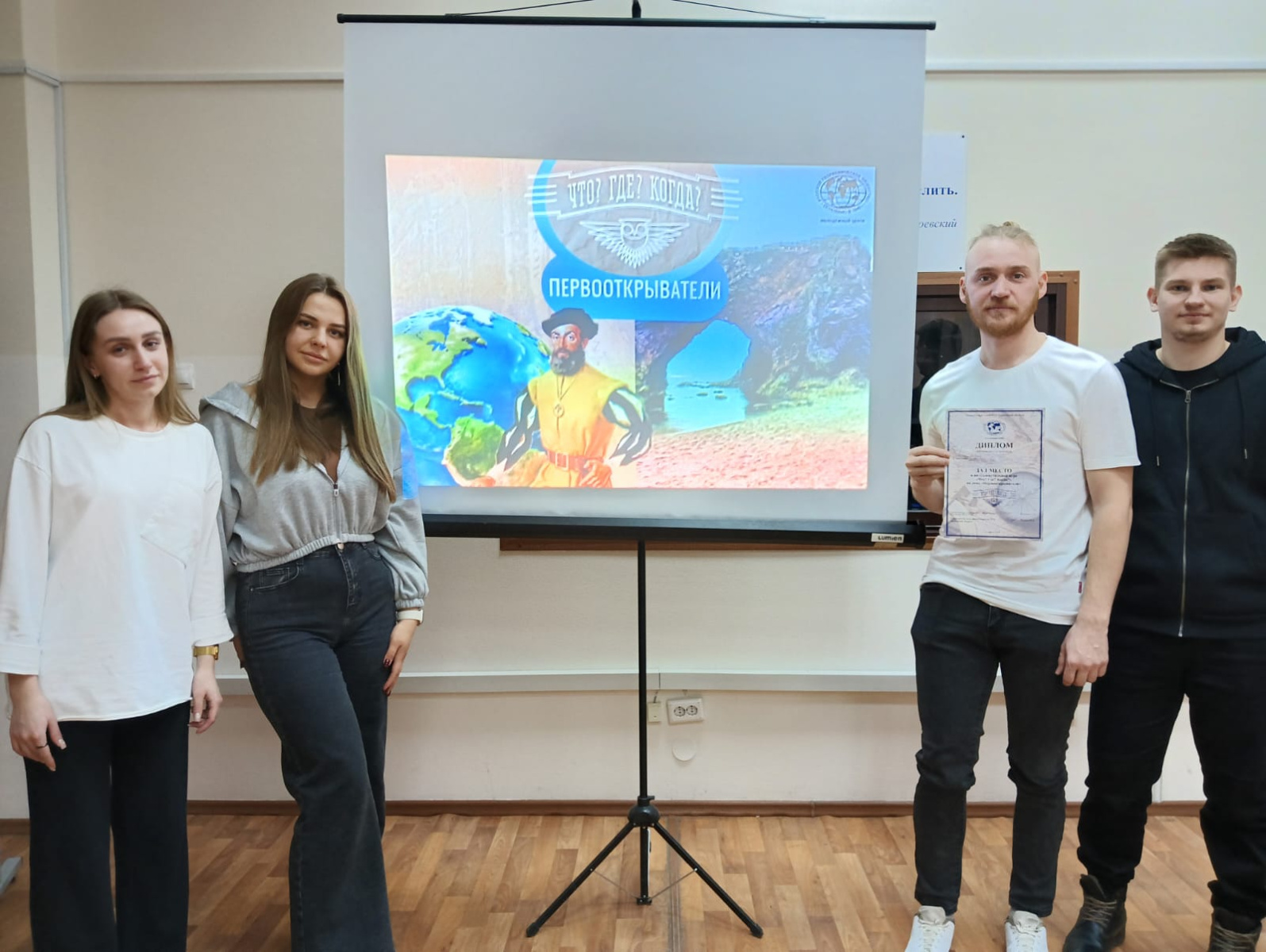 На этот раз тему игры "Что? Где? Когда?" организаторы посвятили первооткрывателям. Участники объединились в четыре команды.