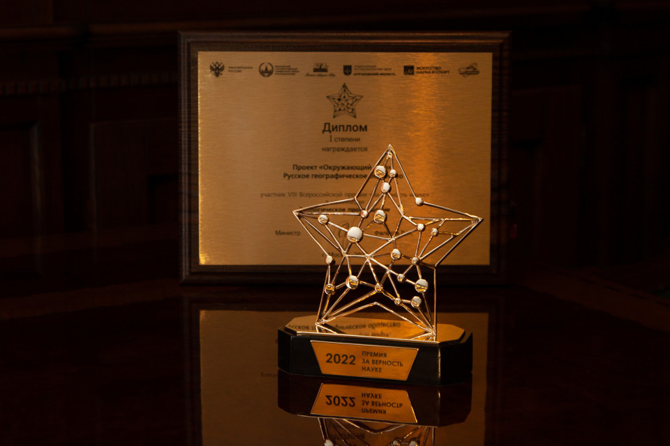 Проект гражданской науки Русского географического общества "Окружающий мир" победил в номинации "Экологическое просвещение". Премию вручил начальник Управления Президента Российской Федерации по общественным проектам Сергей Новиков.