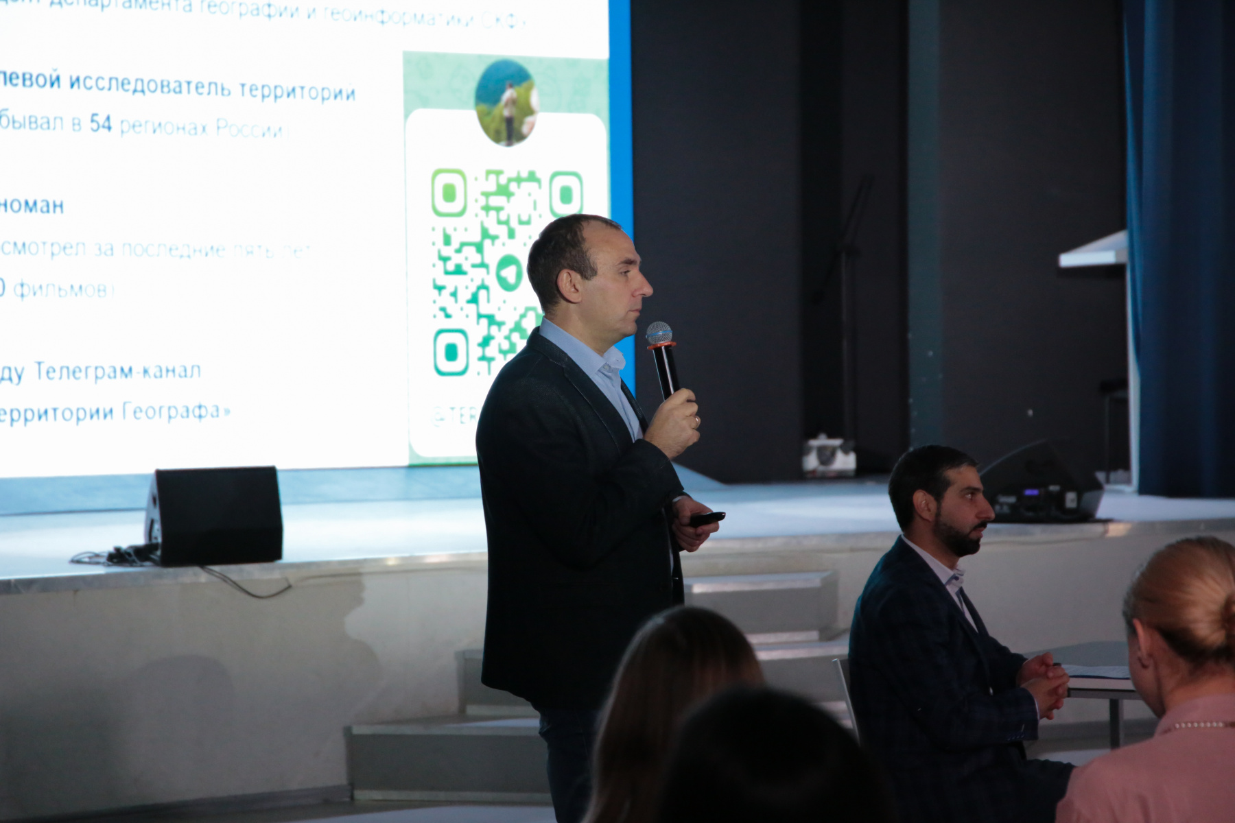 Дополняя творческую часть программы, Василий Чихичин, кандидат географических наук, доцент департамента географии и геоинформатики факультета международных отношений СКФУ, представил доклад, посвящённый географическим особенностям исследуемых территорий. Он рассказал о влиянии природных условий на формирование регионального облика, методах полевых наблюдений и связях между ландшафтом, культурой и историей Крыма.