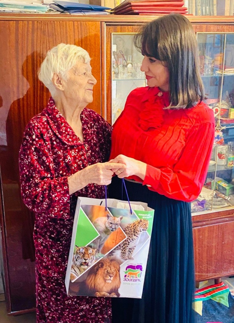 Руководитель Молодежного клуба Ростовского отделения Русского географического общества Наталья Давыдова вместе с директором Ростовского-на-Дону зоопарка Юлия Соболева поздравили с наступающим Новым годом легендарного человека – Клавдию Константиновну Мирошникову.