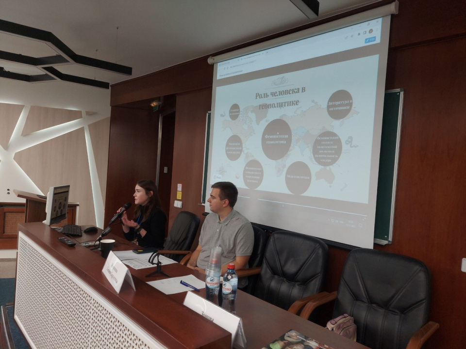 Завершил секцию доклад на тему "Роль человека в геополитике" Дарьи Гусевой. В своем выступлении она обозначила взаимосвязь телесности и человеческих отношений с геополитикой и рассмотрела место и актуальность феминистической повестки в постколониальных исследованиях мировых политических процессов.