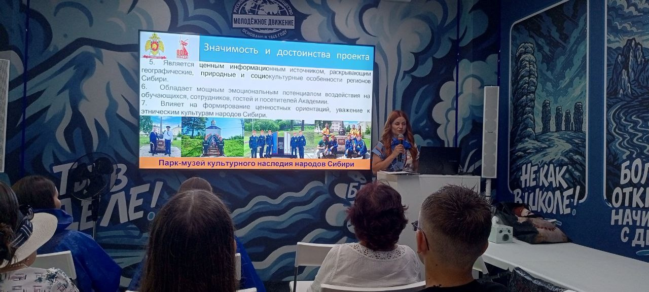 Не менее захватывающим стало погружение в мир сибирских исследований. Эксперт Молодежного центра Юлия Коваль рассказала о возможностях участия в поисково-исследовательских экспедициях и о значимости культурно-исторических проектов. В качестве яркого примера был представлен "Парк-музей культурного наследия народов Сибири" – проект, удостоенный престижной национальной премии "Хрустальный компас" в 2023 году. Этот проект реализован активистами Молодежного клуба РГО "Звезда спасения" Сибирской Академии ГПС МЧС РФ. Проект наглядно демонстрирует, как сохраняются и передаются потомкам бесценные знания и традиции жителей Сибири.