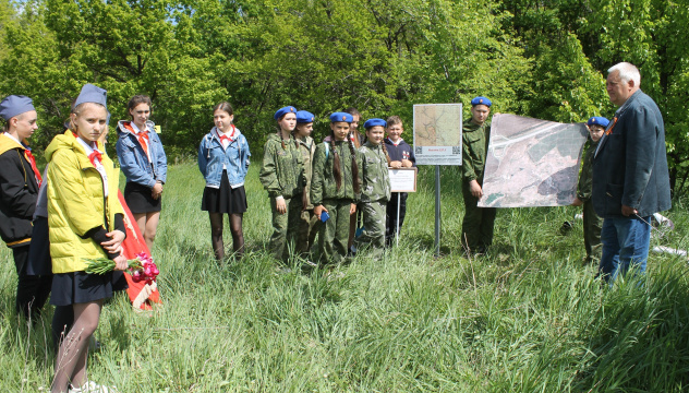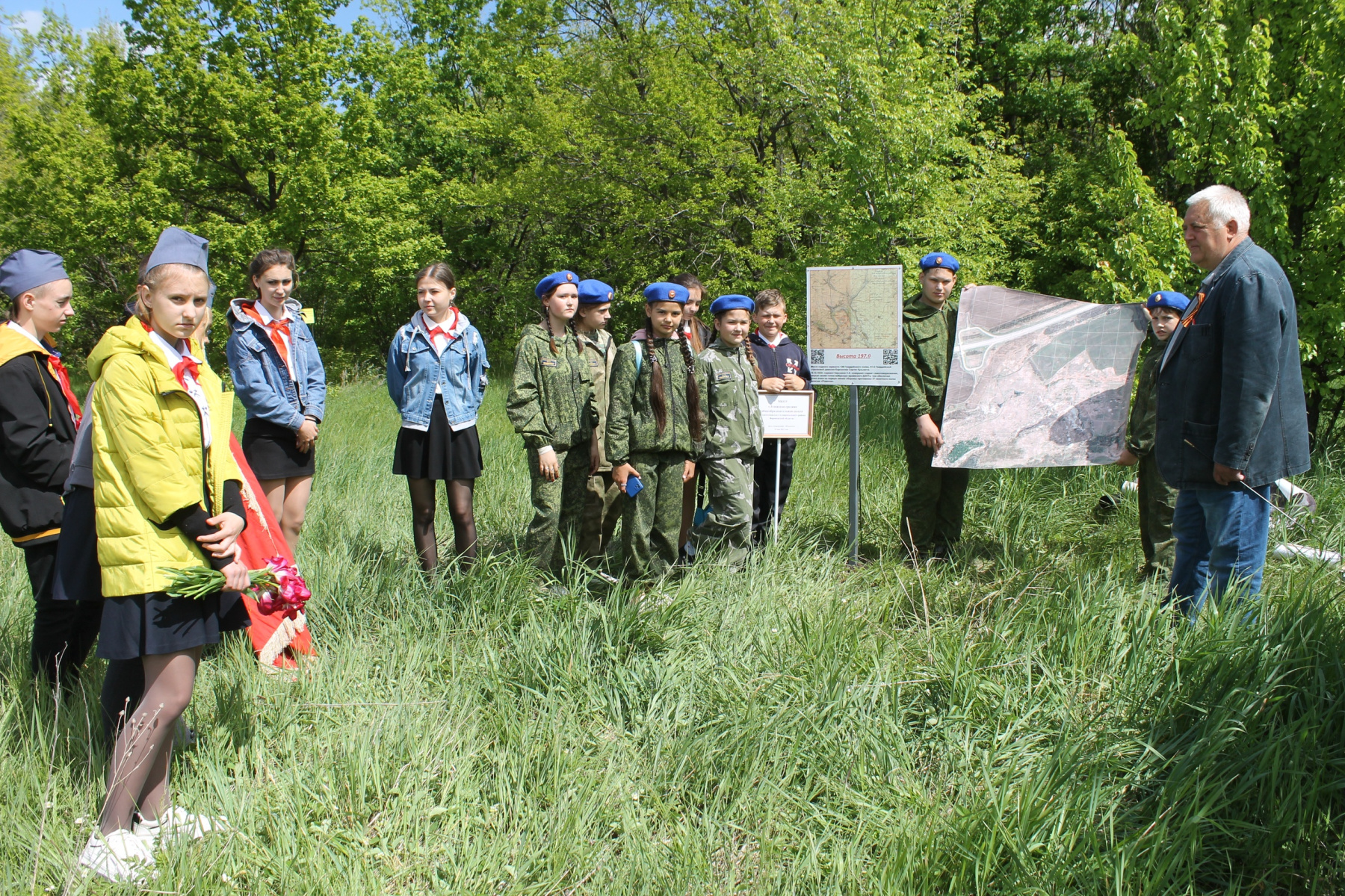 19 мая курсанты ВПК «Вымпел – Дон» и активисты Молодежного клуба РГО посетили Осетровский плацдарм, где в торжественной обстановке состоялось открытие закрепленной за нашим клубом высоты 197,0. на месте подвига сержанта 126 Гвардейского полка 41-й Гвардейской стрелковой дивизии Кирсанова Сергея Кузьмича.