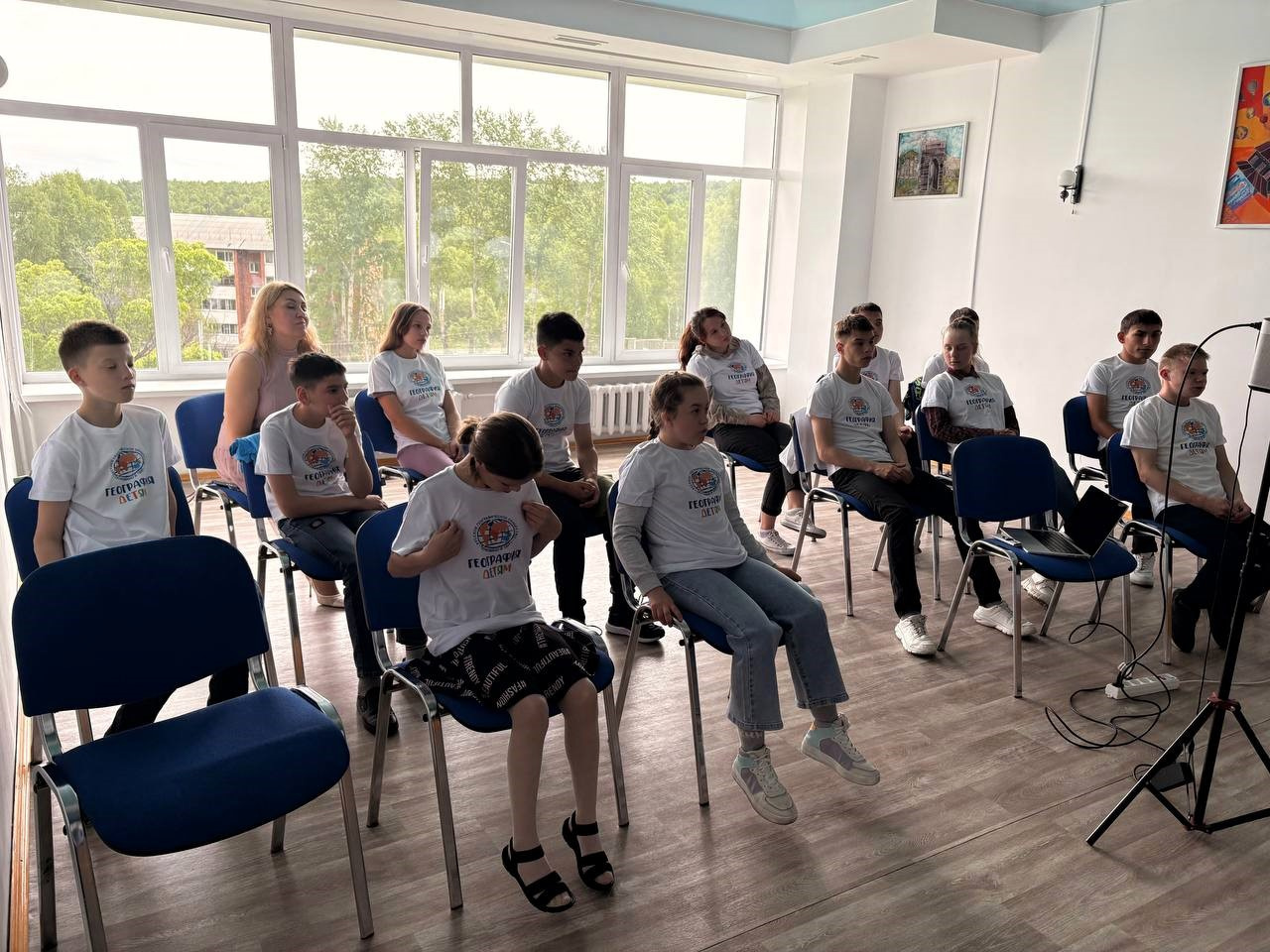 Завершилась Акция приятными эмоциями: ребята получили индивидуальный подарок от Русского географического общества, Центру были переданы книги, а в память о мероприятии оставили коллективное фото участников Акции.
