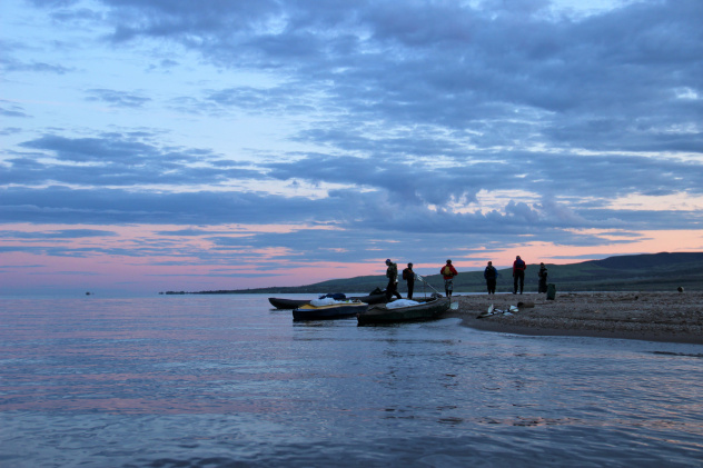 Изначально переход по Волге был запланирован с использование морских каяков (сияков), так как условия приближены к морским – местами ширина водохранилища достигала от 12 до 15 километров.
