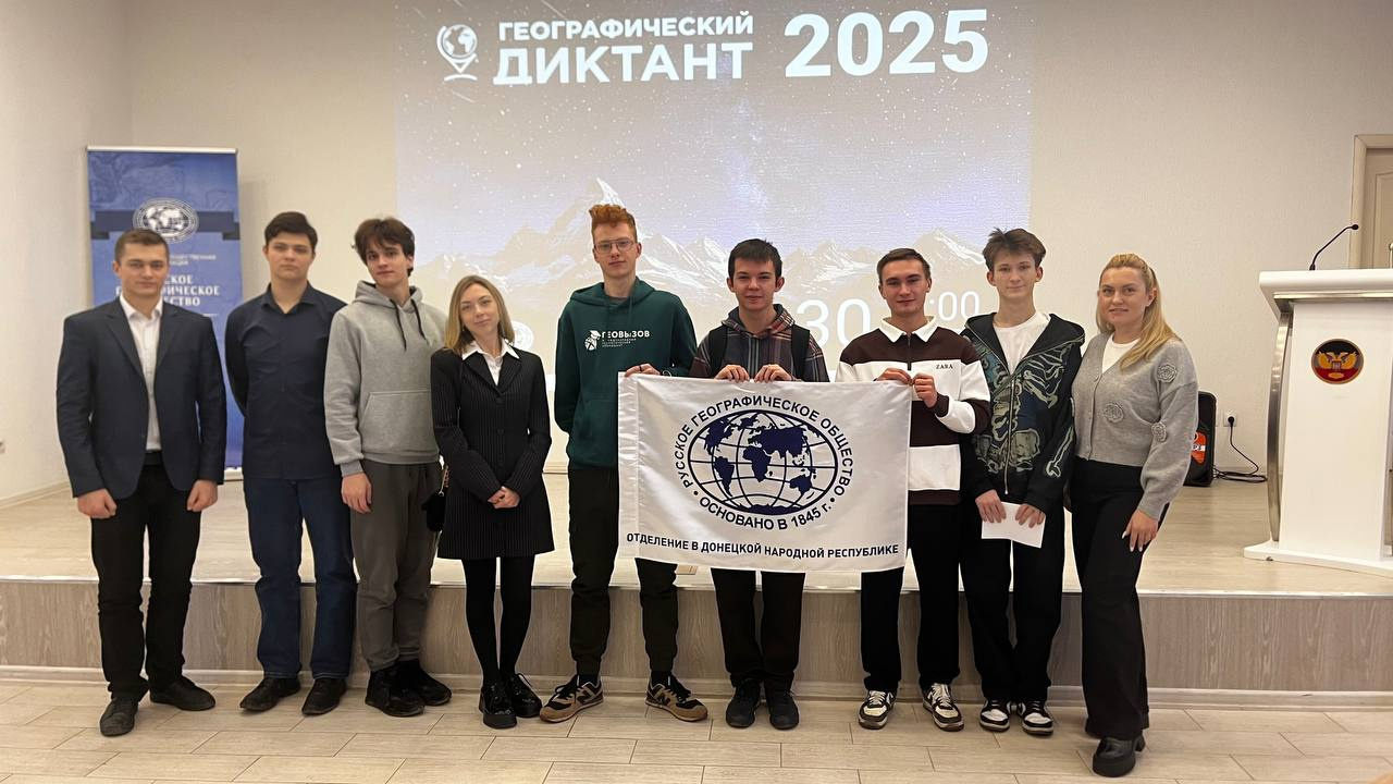 Студенты Донецкого национального технического университета, активисты Молодежного Клуба Русского географического "Донбасс" показали свою географическую грамотность и лидерские способности еще в начале просветительной акции, ответив на 3 вопроса из 5 от Донецкого республиканского краеведческого музея, приуроченные географии Родного края, дав возможность другим участникам также получить памятные призы от Русского географического общества. Знатоками географии оказались студенты инженерно-экономического факультета, информационных систем и технологий, факультета недропользования и наук о Земле. Всем участникам Диктанта были выданы Свидетельства об участии.