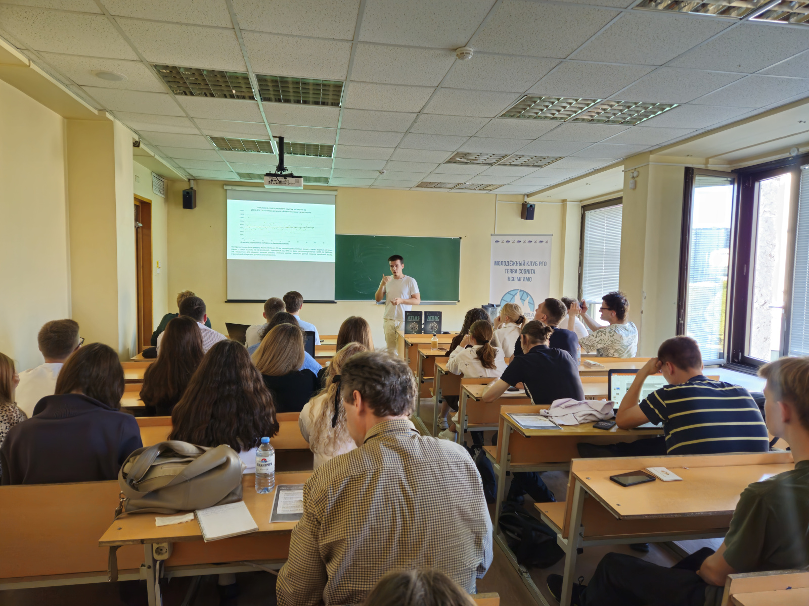 20 сентября представители трёх университетов познакомили слушателей со своими докладами и получили советы экспертов по развитию этих исследований. Екатерина Якушева (МГИМО) представила доклад "Закономерности в распределении конфликтогенности в постсоветских странах в 1992-2022 гг.: опыт пространственного анализа", в котором отражено исследование Молодежной сетевой научно-исследовательской лаборатории МГИМО и ПсковГу "Центр кроссрегиональных и трансграничных исследований". Андрей Романенко (МПГУ) познакомил собравшихся с пространственными особенностями федерализма в России. Зачерий Сахтарьек выступил с сообщением "Влияние административно-территориальных границ на связи между национальными населенными пунктами (на примере аулов республики Адыгея)". Дмитрий Шутиков (МПГУ) выделил географические причины зарождения и эскалации арабо-израильского конфликта. Дмитрий Сердюк (МГИМО) представил исследование "Геоинформационное районирование России по экспорту услуг". В качестве экспертов выступили доценты кафедры экономической и социальной географии МПГУ Дмитрий Заяц и Наталья Роготень, а также директор Центра пространственного анализа международных отношений Института международных исследований МГИМО Игорь Окунев. Модерировал обсуждение председатель МК РГО Terra Politica НСО МГИМО Арсений Чугин (МГИМО).
