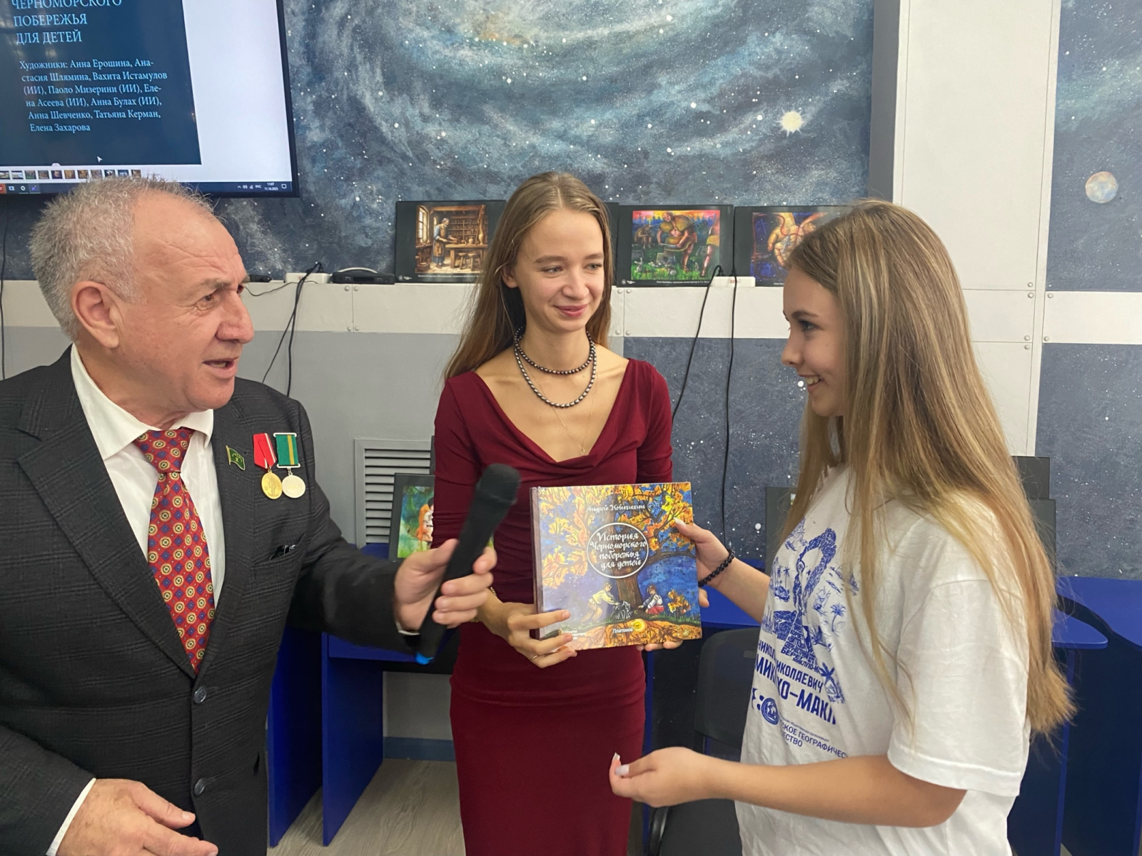 Одним из центральных событий стал фестиваль «Античное наследие России. Связь времен и народов», реализуемый в рамках проекта «Мы — РГО», посвящённого 180-летию общества. Ребята познакомились с проектами «Золотое кольцо Боспорского царства» и «История Черноморского побережья для детей», а также встретились с представителями научных организаций. Главный специалист филиала Южного территориального округа РосРАО Рубен Данов рассказал о строении атома и свойствах изотопов.