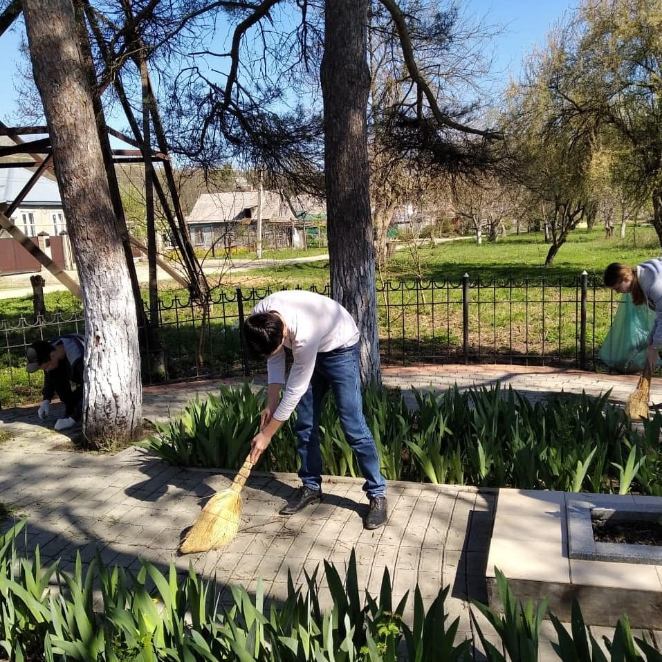 Активисты Молодежного клуба РГО, учащиеся Хадыженской средней школы № 24 имени К.И. Недорубова третий год подряд проводят "Трудовой десант" ко Дню Победы.