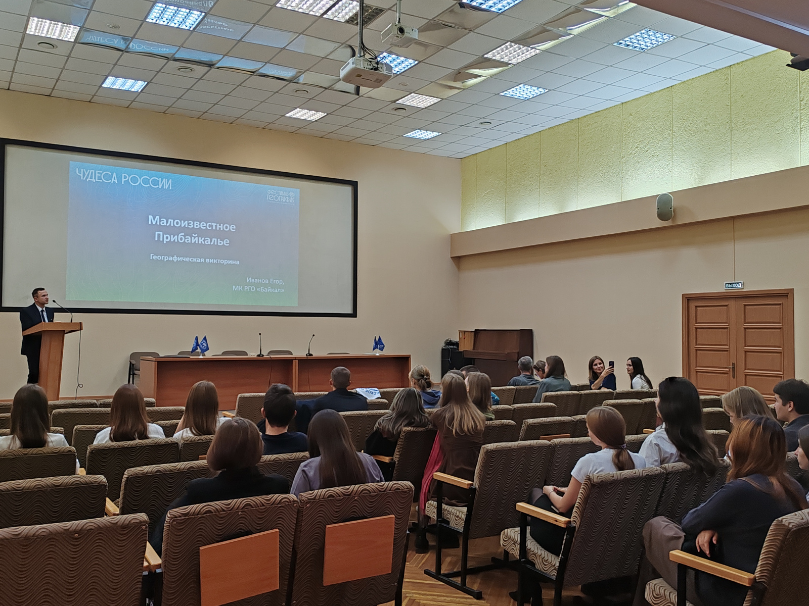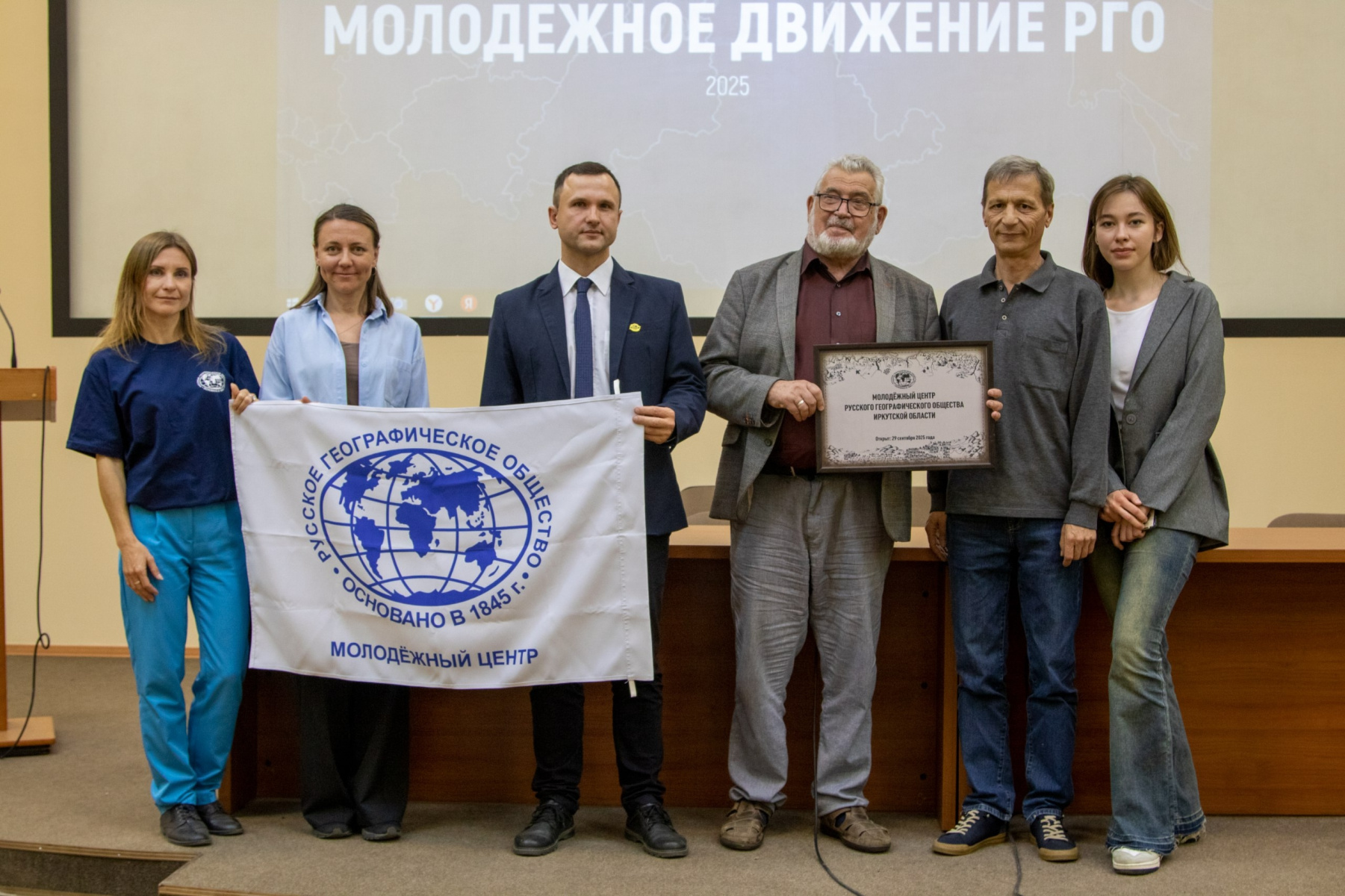 Торжественная церемония открытия Молодёжного центра РГО Иркутской области состоялась 29 сентября в конференц-зале Института географии им. В. Б. Сочавы СО РАН. На открытии присутствовали студенты географического факультета и Педагогического института Иркутского государственного университета.