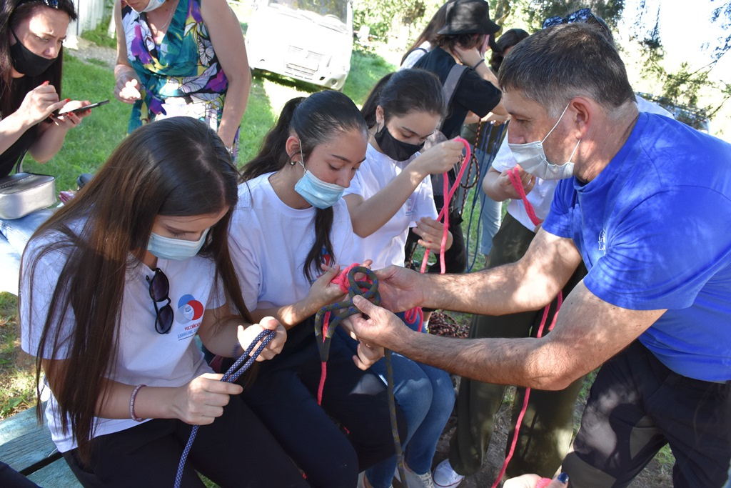 Также на территории поисково-спасательного подразделения «Нальчик» Эльбрусского высокогорного поисково-спасательного отряда МЧС России состоялось занятие по основам работы с туристским и альпинистским снаряжением, которое провел для участников проекта спасатель международного класса, восходитель на высочайшие вершины мира, Азнаур Аккаев. Занятие было посвящено ознакомлению с основным снаряжением, а также вязки некоторых альпинистских узлов.