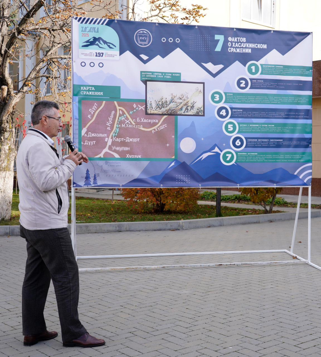 Программа мероприятия открылась выставкой «Страницы истории. К 197-летию вхождения Карачая в состав России» и открытой лекцией доктора исторических наук, профессора Рустама Бегеулова.