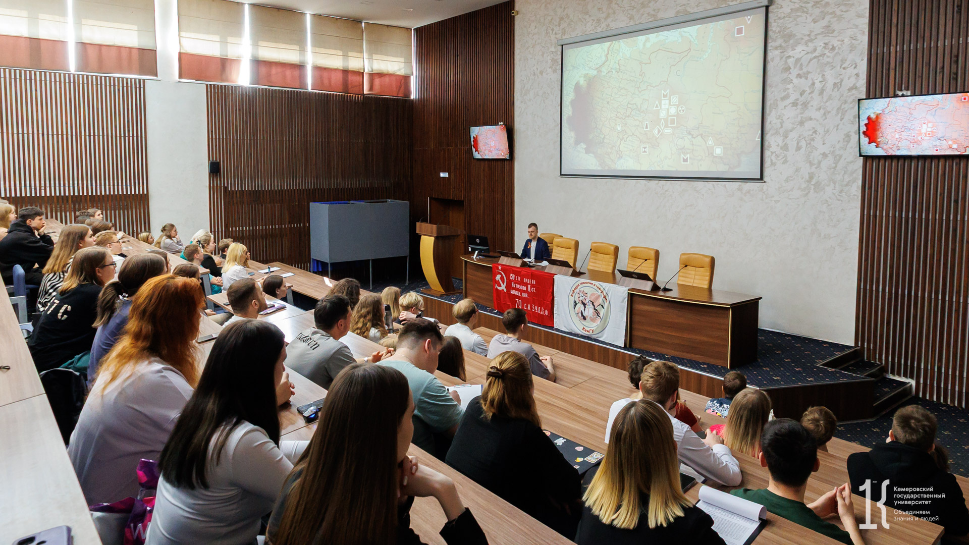 В Кемеровском государственном университете 28 апреля по инициативе кафедры геологии и географии КемГУ, регионального Молодёжного центра Русского географического общества, Научного геолого-географического общества учащихся студентов и молодых учёных прошёл молодёжный лекторий «Географы и геологи – фронту».