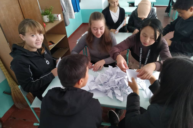 Акция прошла среди школьников с 5 по 10 классов. Задача ребят была сделать как можно больше журавликов оригами. Победителям и призерам подарили книги художественной литературы и шашки, а все остальные участники получили почетные грамоты.
