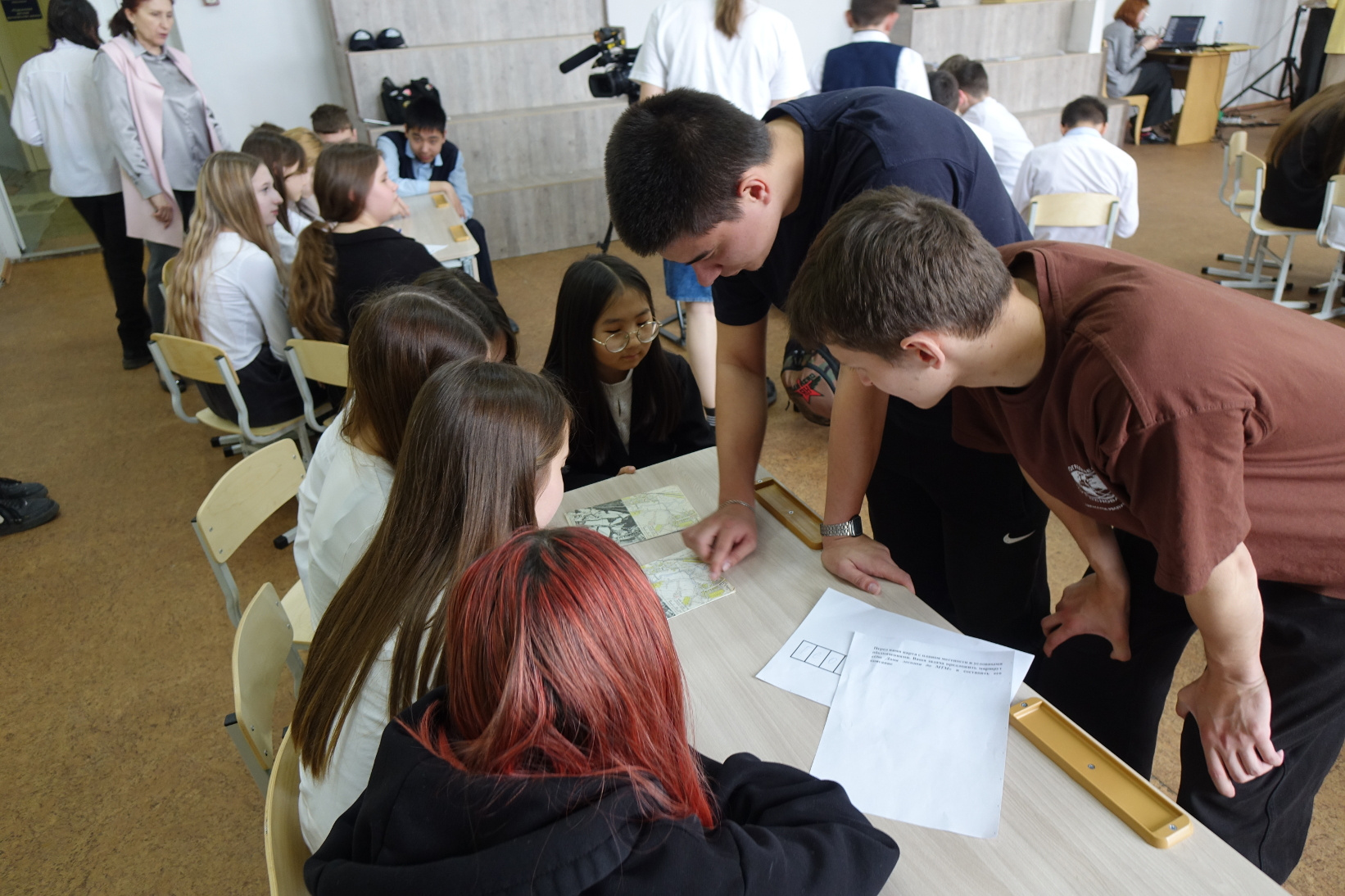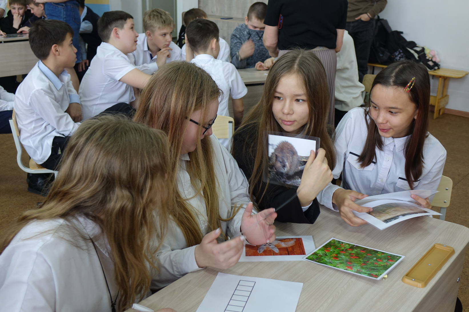 В гости к школьникам приехали активисты Молодёжного клуба РГО "Хан Тигир". Они подготовили для ребят познавательную программу. В ходе интерактивных, тематических игр юные географы проверили свою эрудированность и географические знания. Ребята угадывали растения и животных на карточках, составляли слова, разбирались в картах, условных обозначениях и прокладывали маршруты по плану местности.