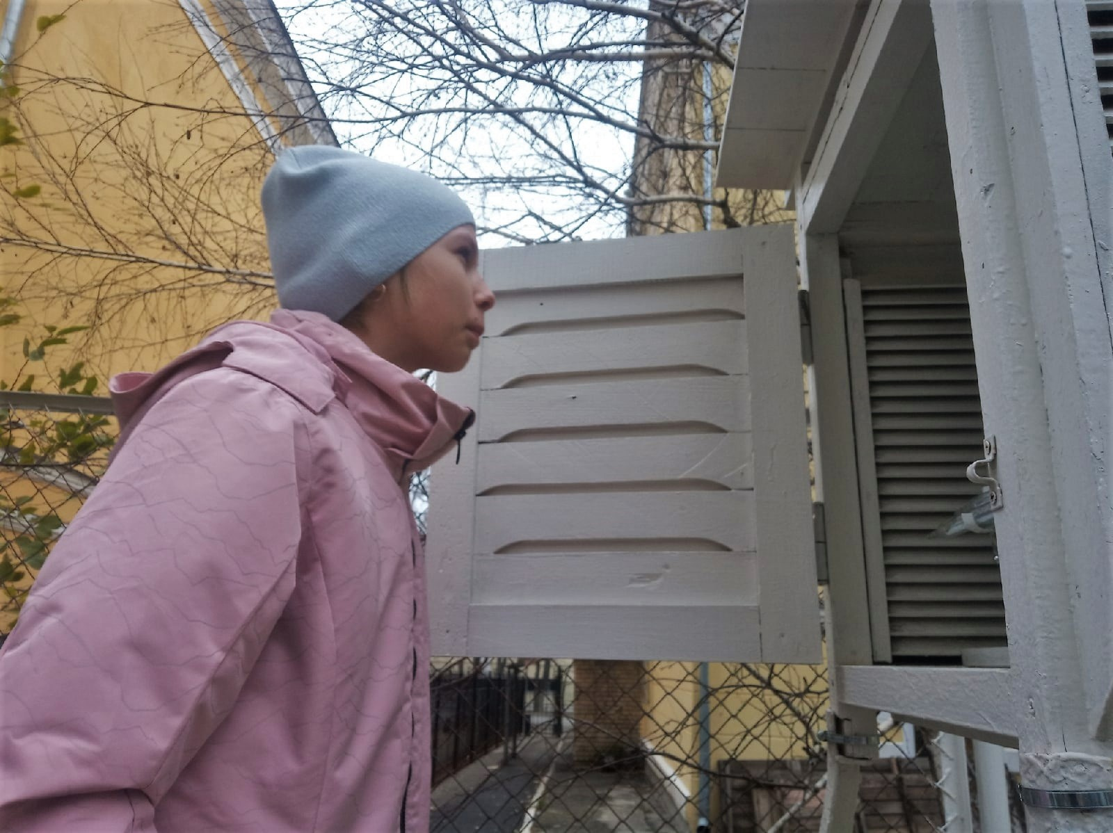 В конце занятия Елена Демидова познакомила учащихся с метеорологической площадкой, расположенной возле географического факультета СГУ, где школьники пробовали сами определять температуру воздуха и почвы, количество и форму облаков.