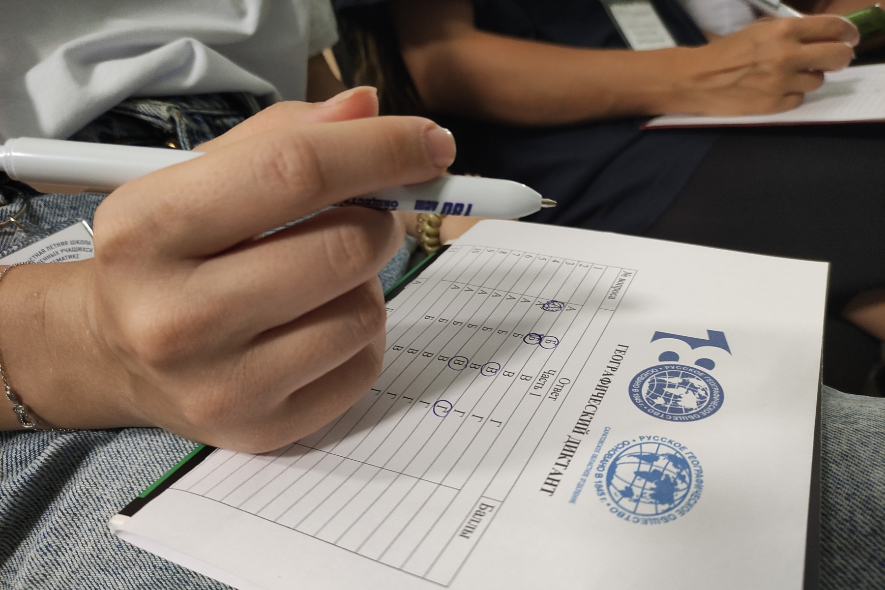 Кульминацией дня стал географический диктант, в котором приняли участие не только юные географы, но и воспитанники всех направлений лагеря «Созвездие». Вопросы касались географии и истории России, что вызвало большой интерес как у ребят, так и у взрослых. Перед началом диктанта членский билет Русского географического общества был торжественно вручен вожатой отряда географов, студентке географического факультета СГУ и активистке Молодёжного движения РГО Анастасии Сороколадовой. Также участники посмотрели юбилейный ролик о деятельности РГО.