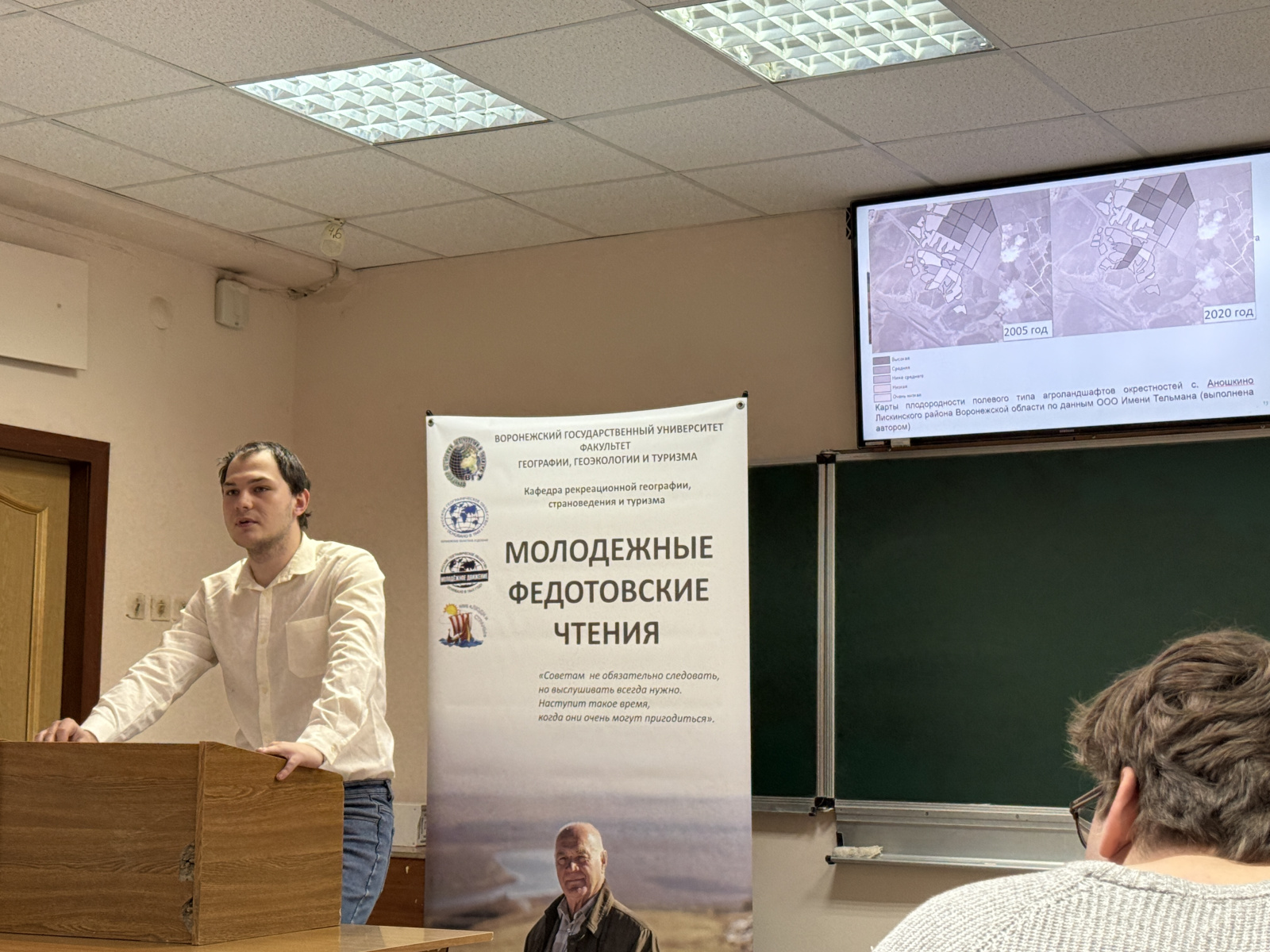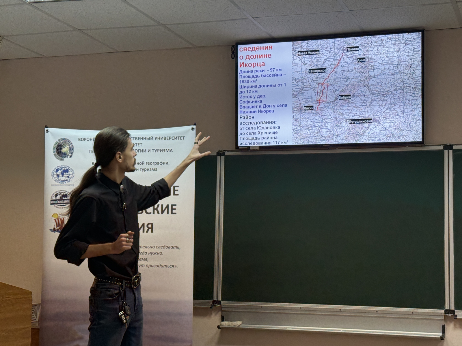 В рамках чтений были представлены доклады, охватывающие широкий спектр научных направлений — от биогеографии и охраны природы до туризма и прикладных географических исследований. Студенты рассказали о результатах исследований в Хопёрском государственном природном заповеднике, проанализировали состояние агроландшафтов Воронежской области, представили ландшафтную карту долины реки Икорец, а также поделились опытом участия в проекте «Заповедное дело РГО» в Астраханском заповеднике.