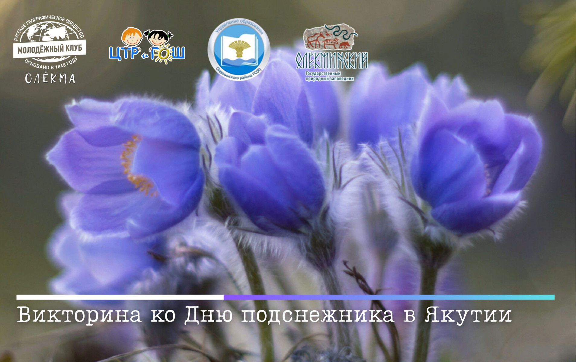 Ежегодно 18 мая в Якутии отмечается День подснежника. Подснежник (ньургуһун) - первый цветок, который появляется после зимних морозов, он символизирует начало весны, победу тепла над холодом и дарит надежду на лучшее. К этой прекрасной дате Молодежный клуб РГО «Олёкма» и Центр творческого развития и гуманитарного образования школьников, при поддержке Управления образования Олекминского района и государственного заповедника «Олекминский», подготовили викторину, пройдя которую вы сможете проверить свои знания о прострелах, произрастающих в Якутии и узнать много нового об этих весенних цветах.