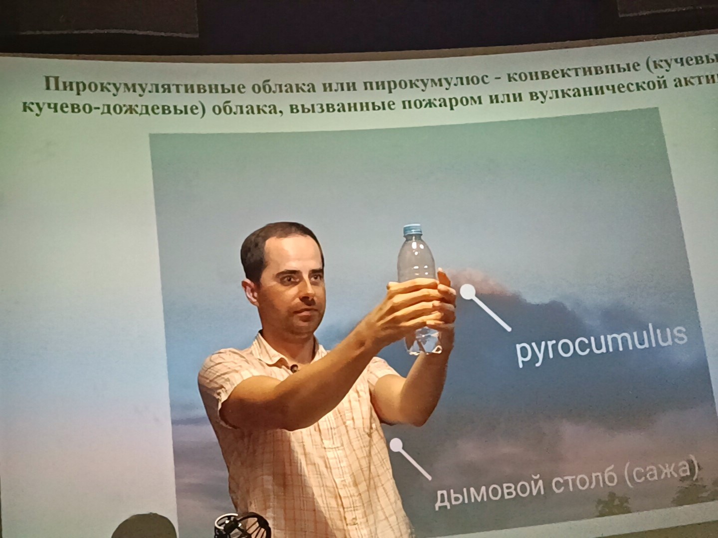Особый интерес вызвала часть лекции, посвящённая атмосферным явлениям, которые можно наблюдать на территории области: туманной радуге, брокенскому призраку, серебристым и вымеобразным облакам. Благодаря фотографиям и примерам из полевых экспедиций обсуждение приобрело наглядность и вызвало живой отклик у слушателей. В аудитории прозвучало много вопросов: от механизмов образования облаков до последствий глобального потепления в России.