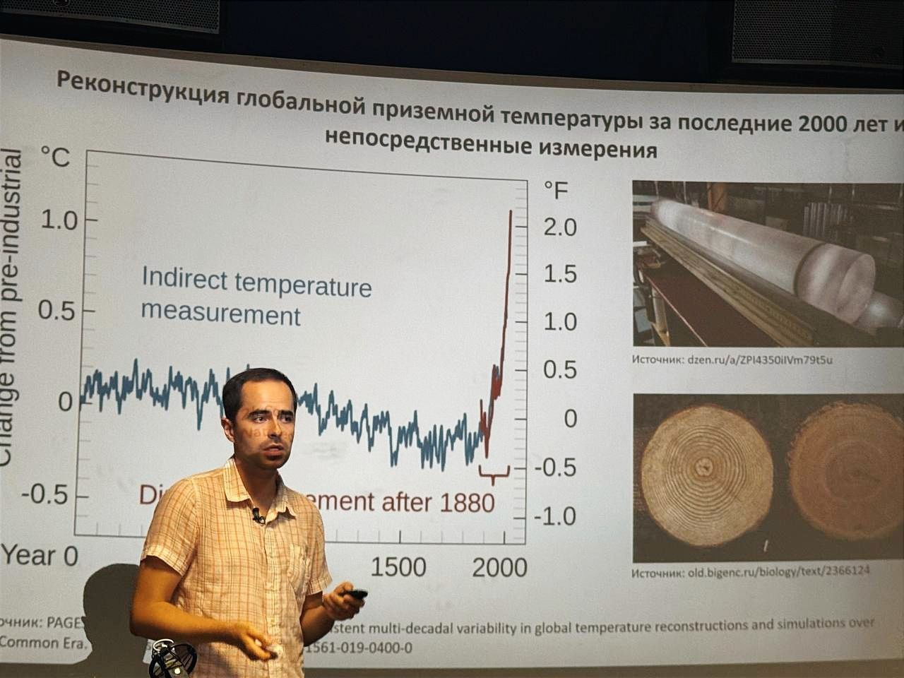 Лекция стала не только образовательным событием, но и настоящим пространством для размышлений. Вместе с лектором участники обсуждали, как климатические сдвиги уже влияют на повседневную жизнь: от изменения сроков сельскохозяйственных работ до роста энергозатрат в городах.