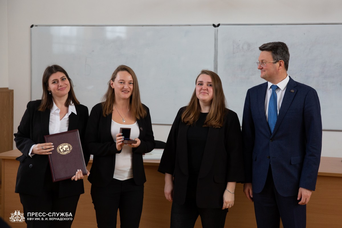 Малой бронзовой медалью Русского географического общества за активное участие в экспедициях, работу и приношение пользы обществу торжественно наградили Молодёжный клуб Крымского отделения РГО в лице руководителя Александры Никифоровой, заместителя - Екатерины Петлюковой и пресс-секретаря - Ксении Гасицы.