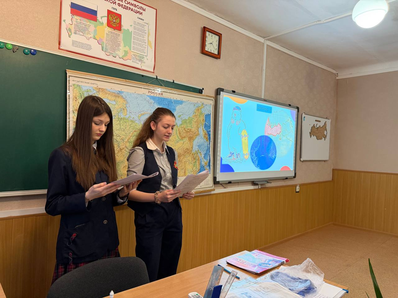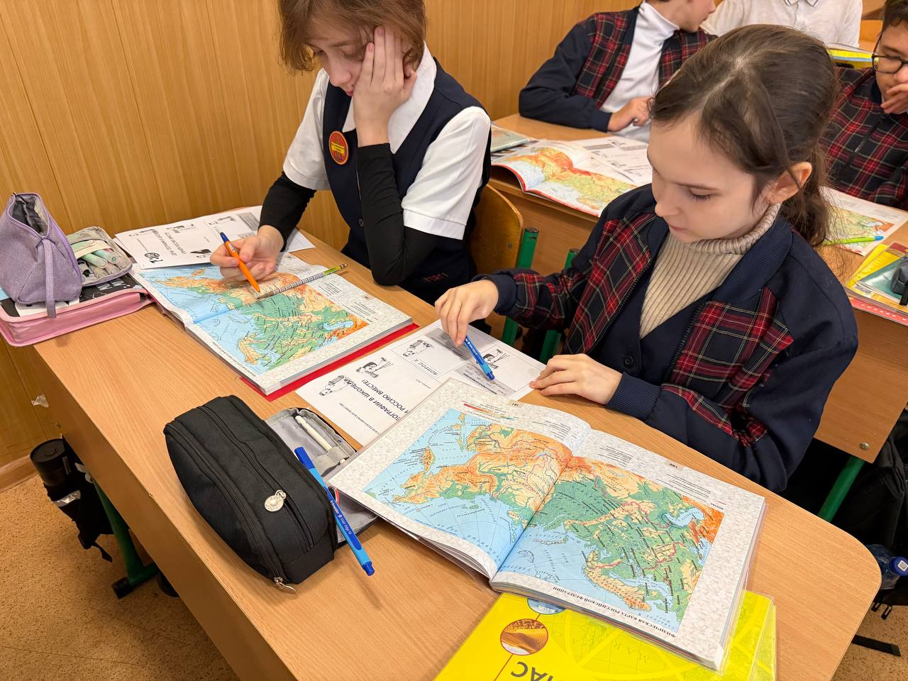 Десятиклассники, участники МК РГО "37 меридиан", провели нестандартный урок географии для шестиклассников по материалам, которые подготовилиэксперты Русского географического общества. Урок прошел в стиле географического диктанта, где у каждого участника был свой личный бланк для ответов. В процессе проведения участники учились пользоваться тематическими картами, анализировали информацию. Организаторы мероприятия подготовили интересные факты о путешественниках, о разнообразии животного мира, о разнообразии народов нашей страны.