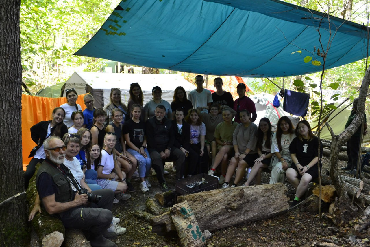 В Гуамском ущелье вожатые и педагоги Всероссийского детского центра "Орлёнок" встретились с выдающимся путешественником Константином Мержоевым и членом Союза фотохудожников Кубани Александром Рябухиным.