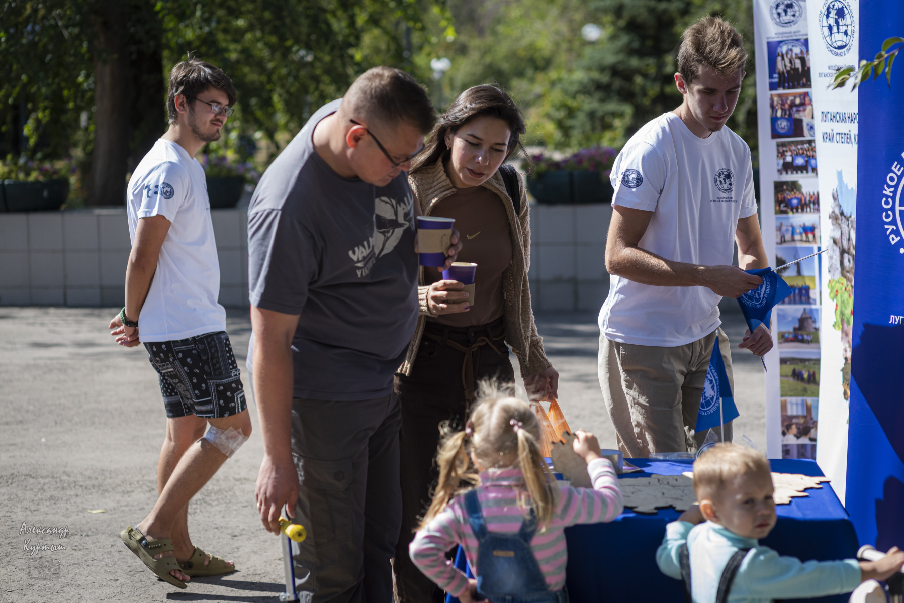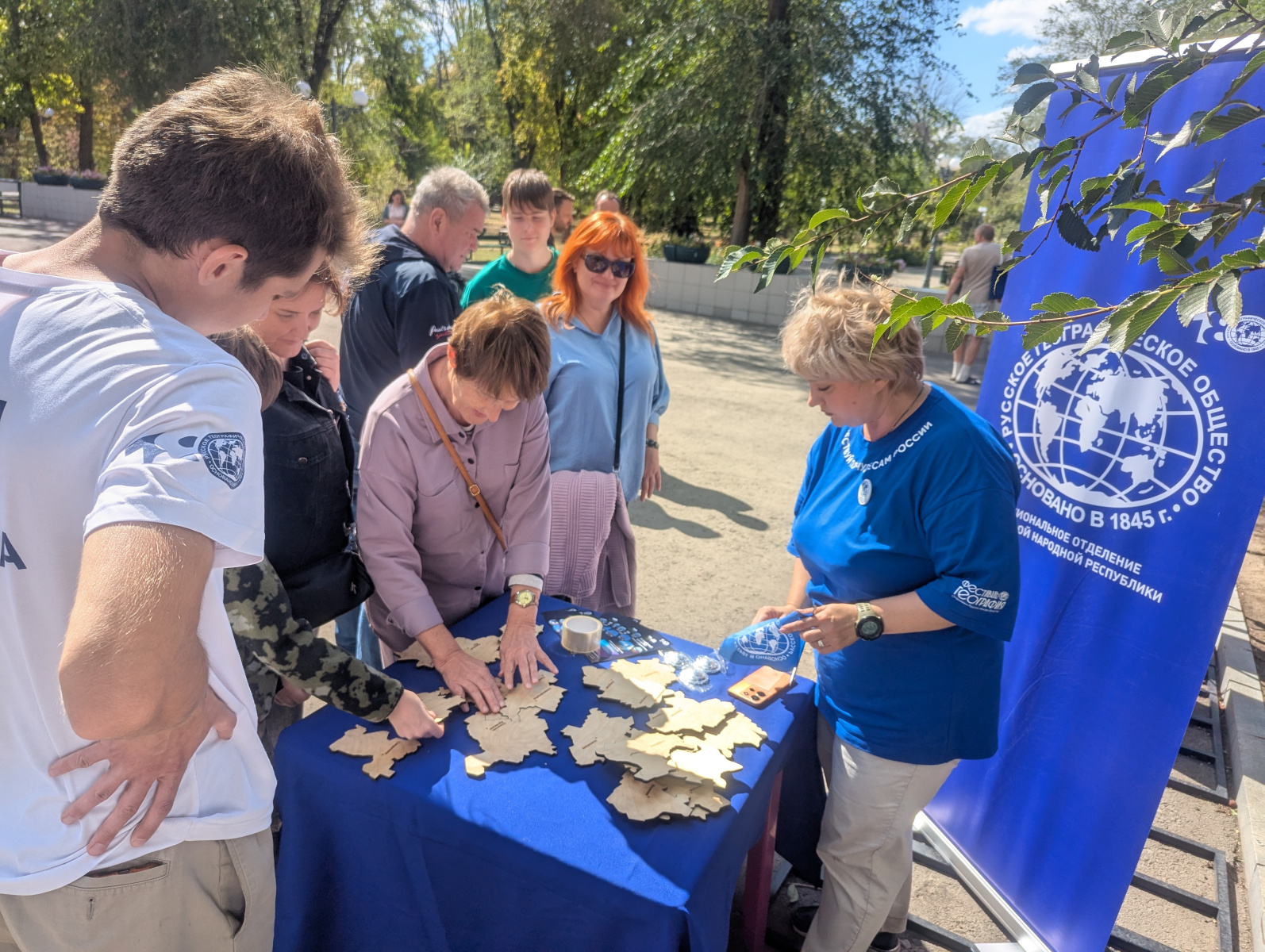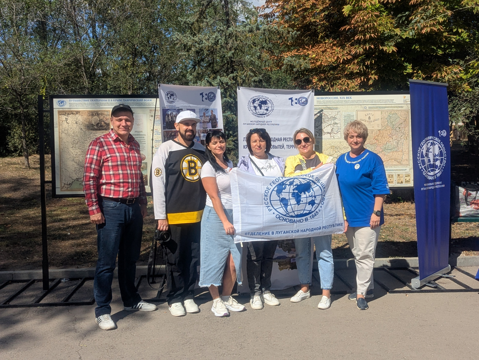 В рамках мероприятий, приуроченных к этим событиям в Парке культуры и отдыха им. М. Горького представители и активисты Регионального отделения РГО в ЛНР и Молодежного центра РГО ЛНР, преподаватели и студенты ЛГПУ представили интерактивную площадку. Используя открытое выставочное пространство, активисты РГО смогли рассказать луганчанам и гостям города о деятельности старейшей общественной организации в России – Всероссийской общественной организации «Русское географическое общество», её отделении в Республике, о работе Молодежного центра. Посетителям выставки представилась возможность проявить географические знания о Родном крае – все желающие имели возможность собрать спилс-карту ЛНР, получить информационные флаеры и памятные призы от РГО в ЛНР.