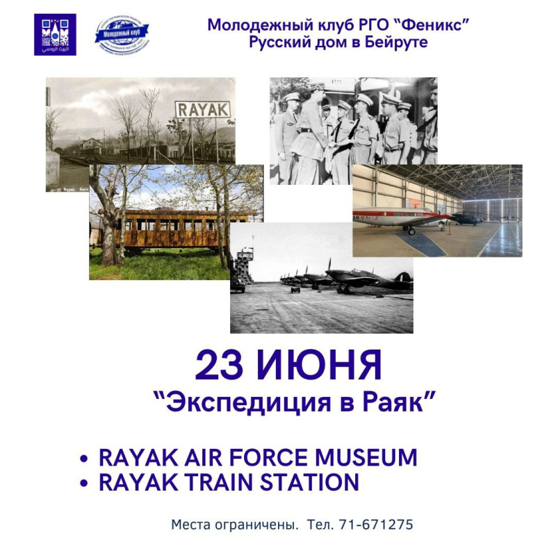 23 июня состоялась ежегодная экспедиция Молодежного клуба РГО "Феникс" на базе Русского дома в Бейруте на ливанскую авиабазу "Раяк". Встреча...
