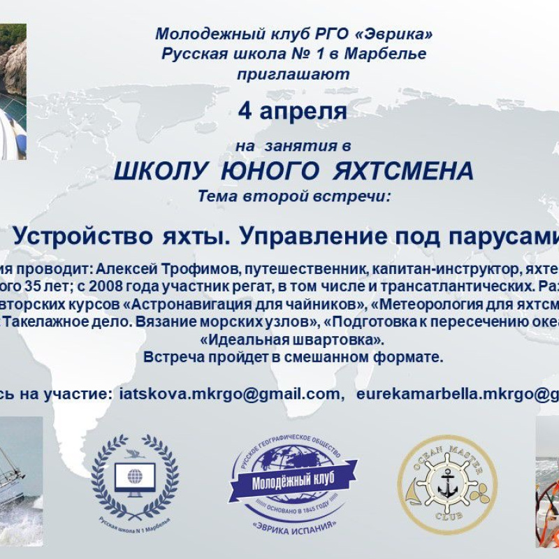 В Марбелье открыла свои двери «Школа юного яхтсмена», организованная Молодежным клубом РГО «Эврика» на базе Русской школы №1 в Марбелье.